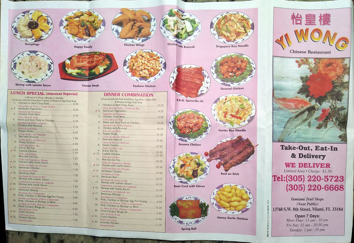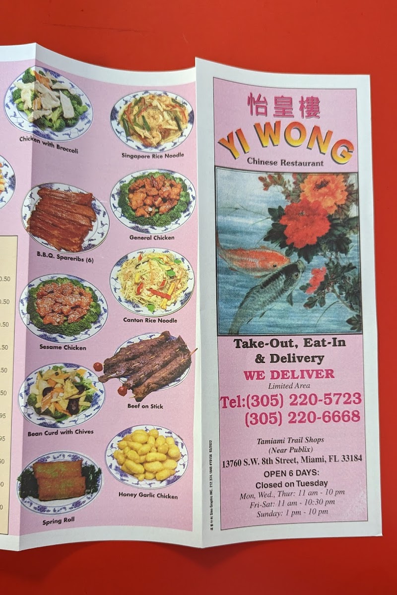 Welcome to Yi-Wong Chinese Restaurant, a beloved culinary gem situated at 13760 SW 8th St in Miami, FL. This family-owned establishment has been serving the community for over two decades, offering an enticing menu that features authentic Chinese dishes made fresh to order.